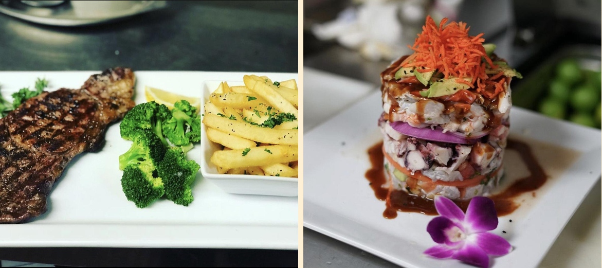 Don't miss the Tostada De Ceviche Al Gusto and the Rib Eye Steak. The Campechana is also a local favorite. For something lighter, try the Grilled Chicken Salad or the Fettuccine Alfredo with Camarones.